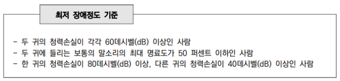 첫째, 청각장애 등록 여부와 둘째, 소득 수준입니다. 이 두 가지 조건을 충족해야 정부 지원을 받을 수 있습니다. .