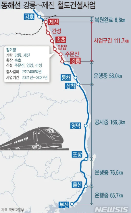 동해선의 노선은 강원도와 경상북도를 아우르며, 총 길이는 약 172.8km에 달합니다. 이 노선은 동해안의 주요 관광지와 연결되어 있어, 많은 사람들이 이용할 것으로 예상됩니다.